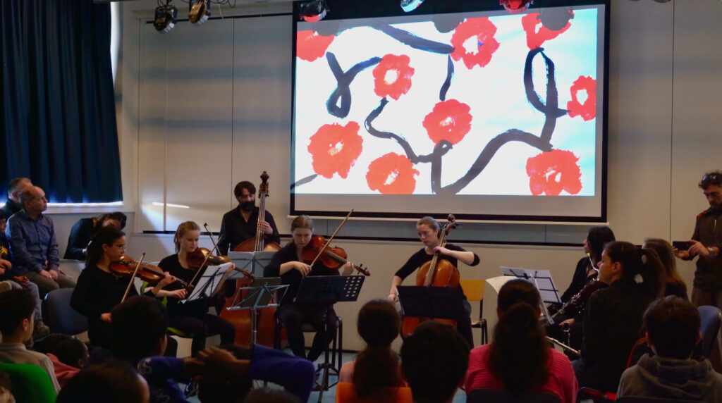 In dit kunsteducatieve project zijn leerlingen samen met professionele musici co-creators van een interactieve live muziekervaring, die hun plezier in het maken van kunst en liefde voor muziek bevordert, gewoon op school. Dit jaar gaan we 6 Beeldconcerten organiseren op 6 scholen in Amsterdam, in het kader en voor de viering van het 750 jaar jubileum van Amsterdam. Dit project wordt gesteund door stichting Amsterdam 750 en het Fonds voor Cultuurparticipatie.