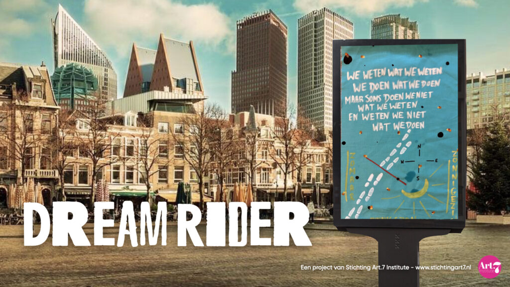 Verkenning van een grootschalig en meerjarig kunstproject voor en met gedupeerde jongeren van het Toeslagenschandaal (18-25 oud). Samen met sociaal werker Demario Romney en verschillende maatschappelijke partners door het hele land (zoals Diversion en Volhouders Rotterdam) wordt een ontwikkeltraject uitgerold tussen 1 januari en 1 augustus 2025. DreamRider wordt gefinancierd door het Fonds voor Cultuurparticipatie.